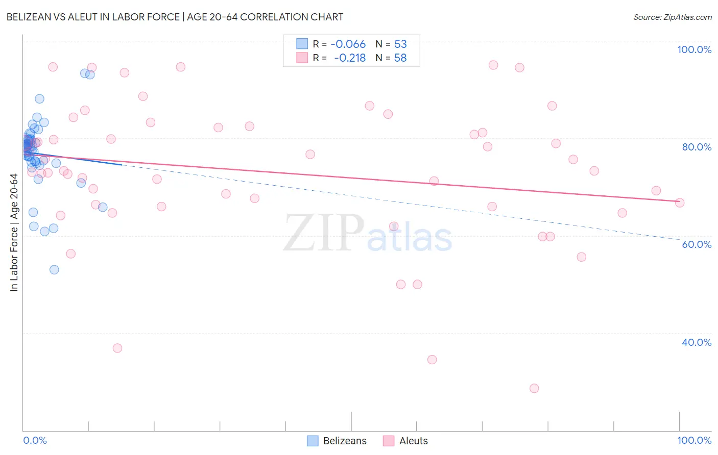 Belizean vs Aleut In Labor Force | Age 20-64 Correlation Chart