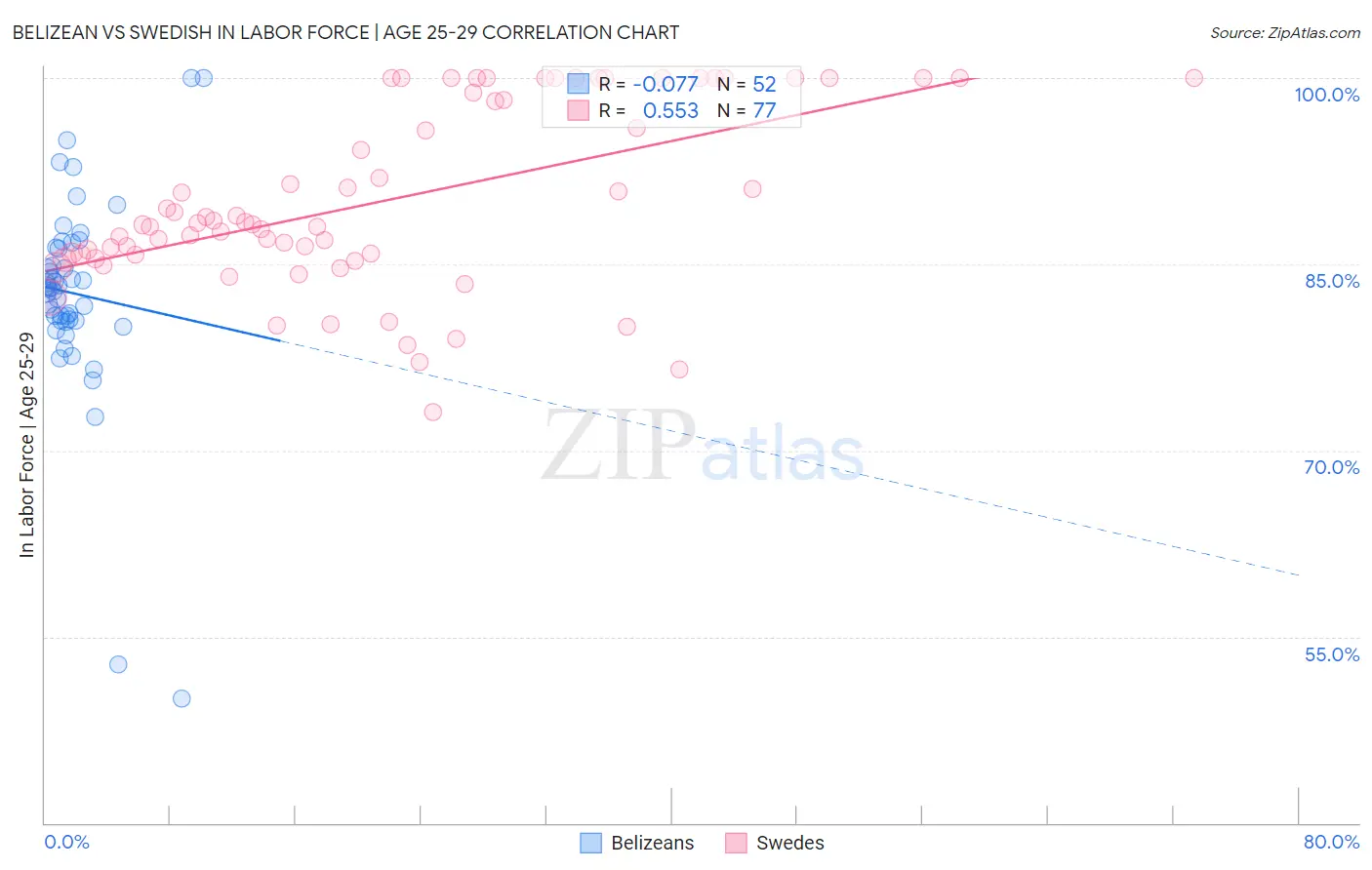 Belizean vs Swedish In Labor Force | Age 25-29 Correlation Chart