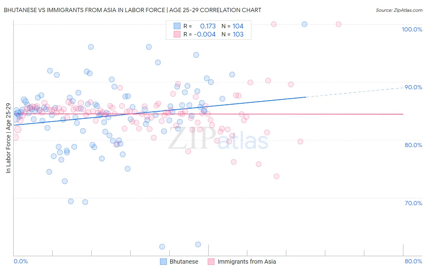 Bhutanese vs Immigrants from Asia In Labor Force | Age 25-29 Correlation Chart