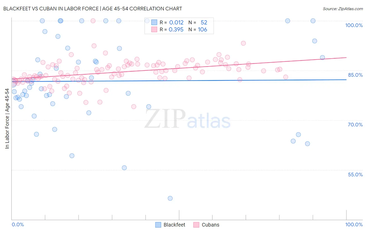 Blackfeet vs Cuban In Labor Force | Age 45-54 Correlation Chart