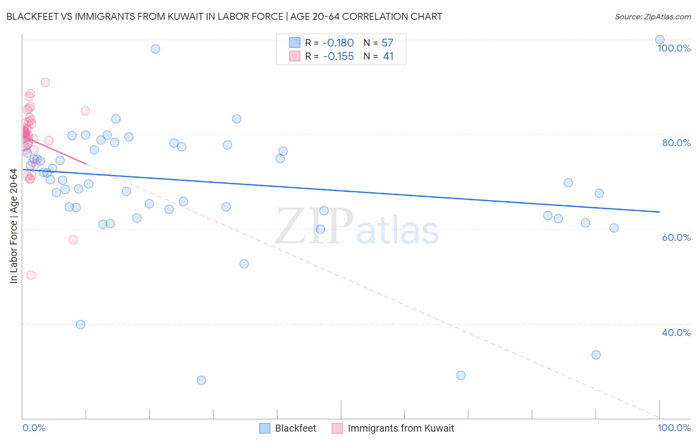Blackfeet vs Immigrants from Kuwait In Labor Force | Age 20-64 Correlation Chart
