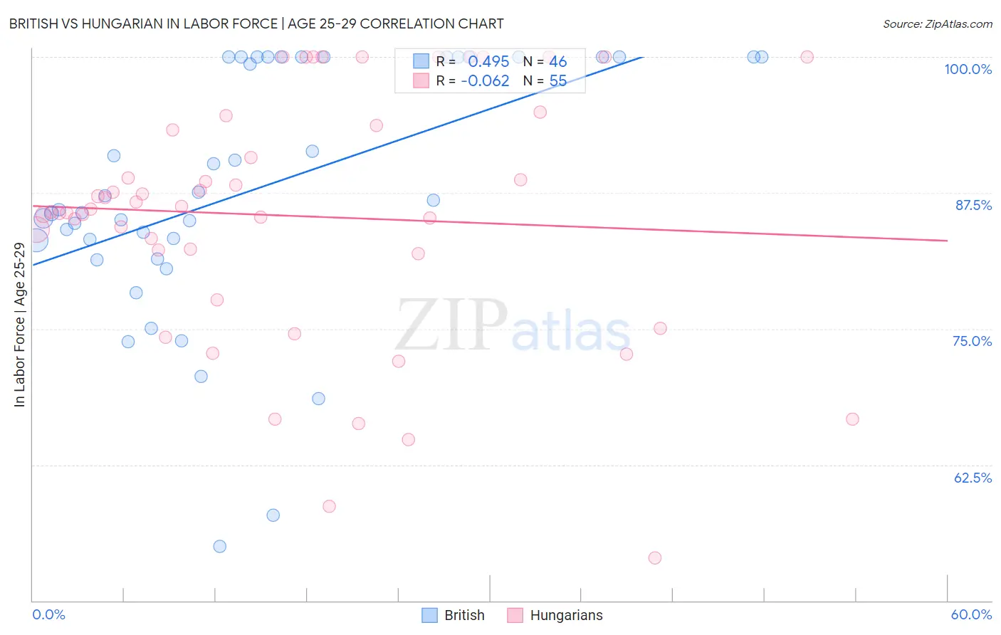 British vs Hungarian In Labor Force | Age 25-29 Correlation Chart