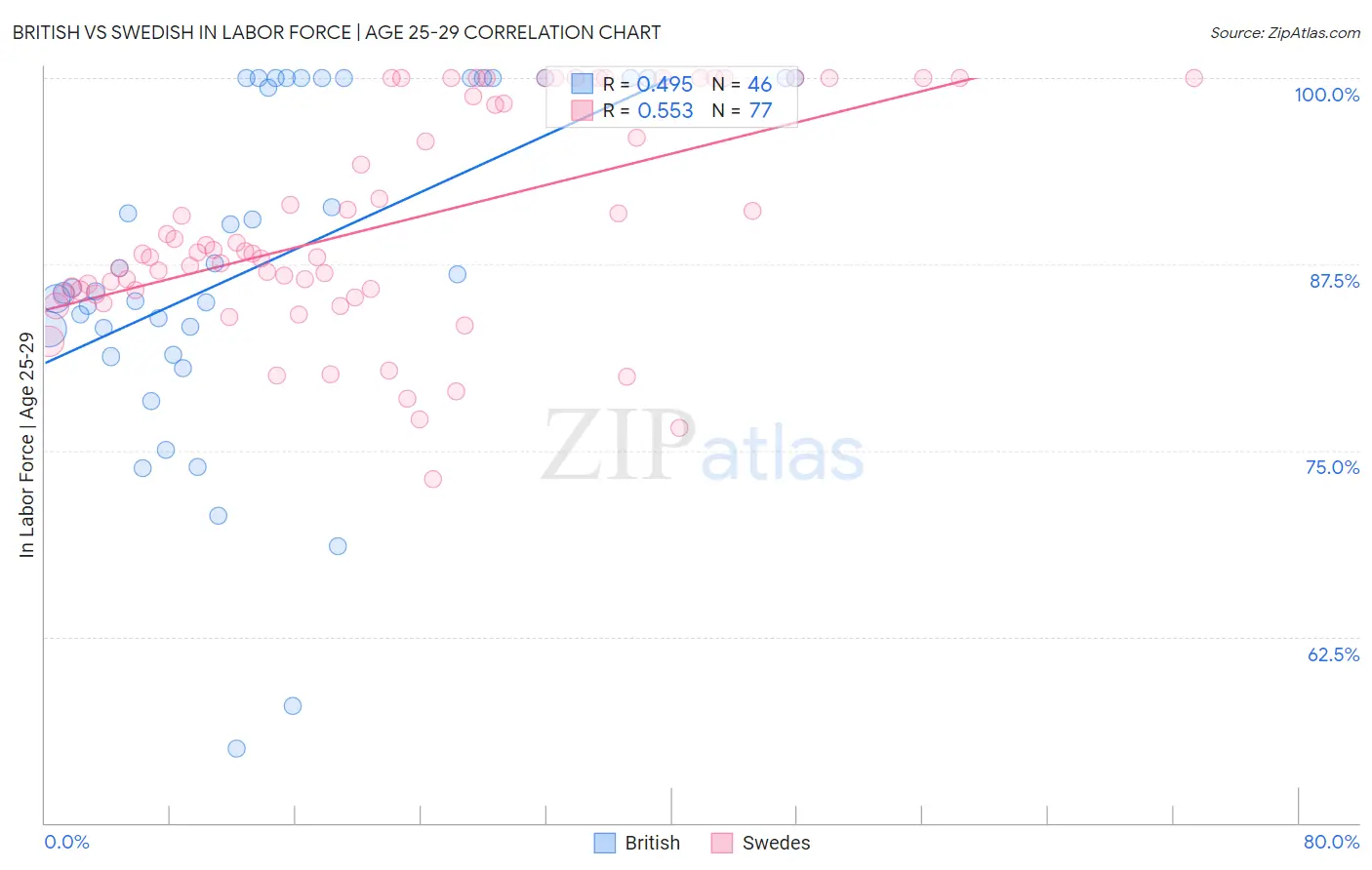 British vs Swedish In Labor Force | Age 25-29 Correlation Chart