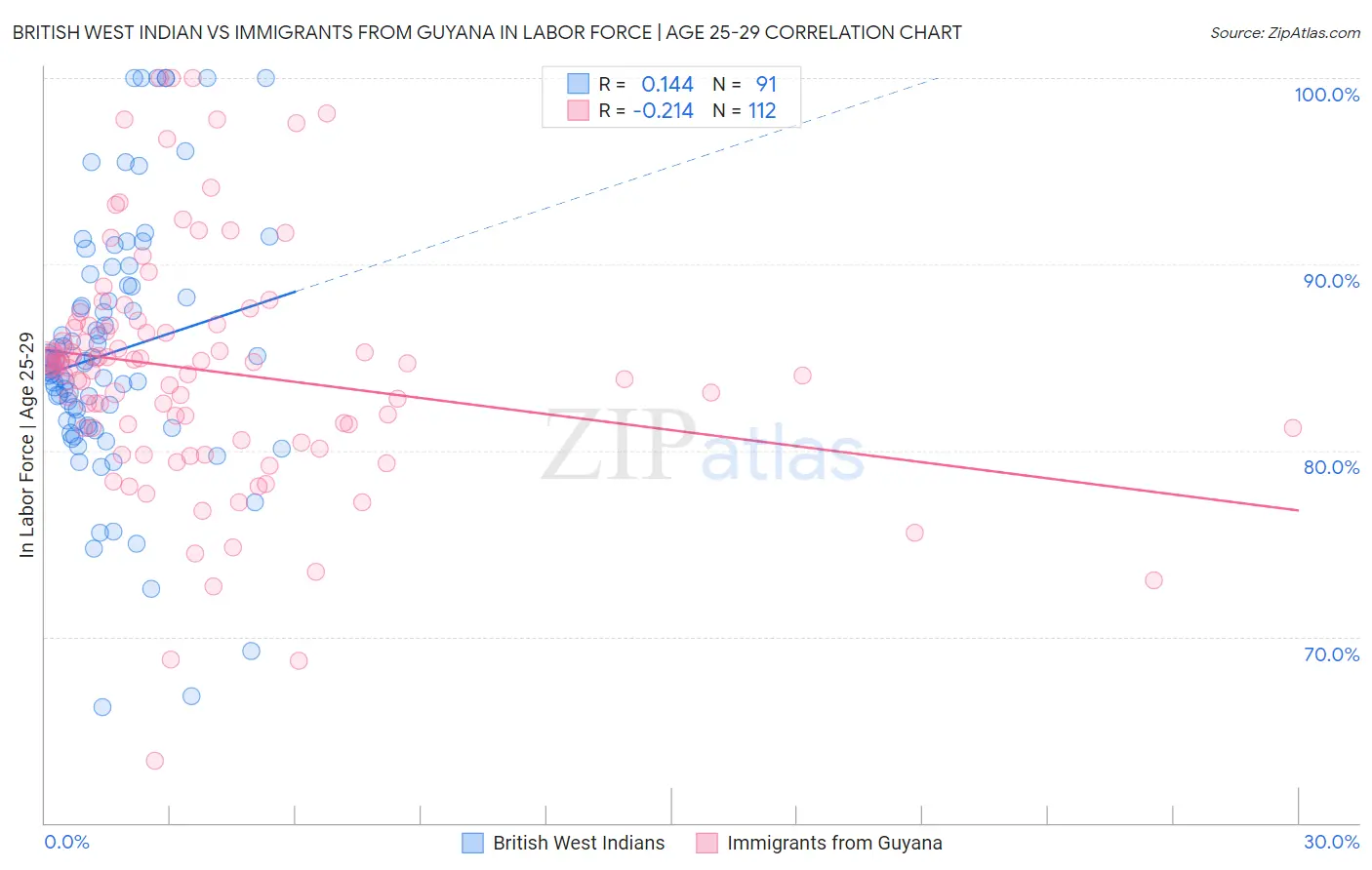 British West Indian vs Immigrants from Guyana In Labor Force | Age 25-29 Correlation Chart