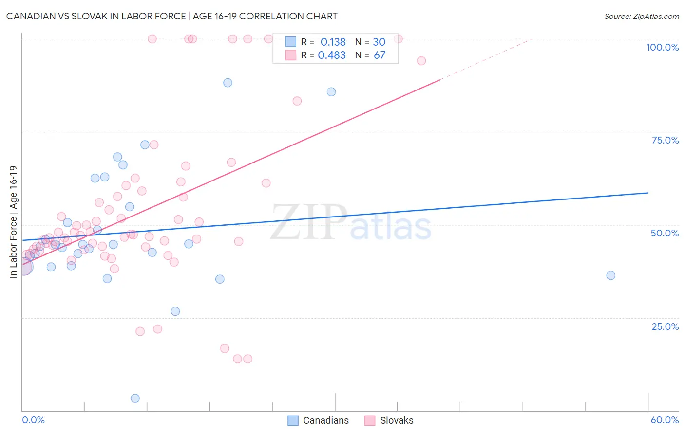 Canadian vs Slovak In Labor Force | Age 16-19 Correlation Chart