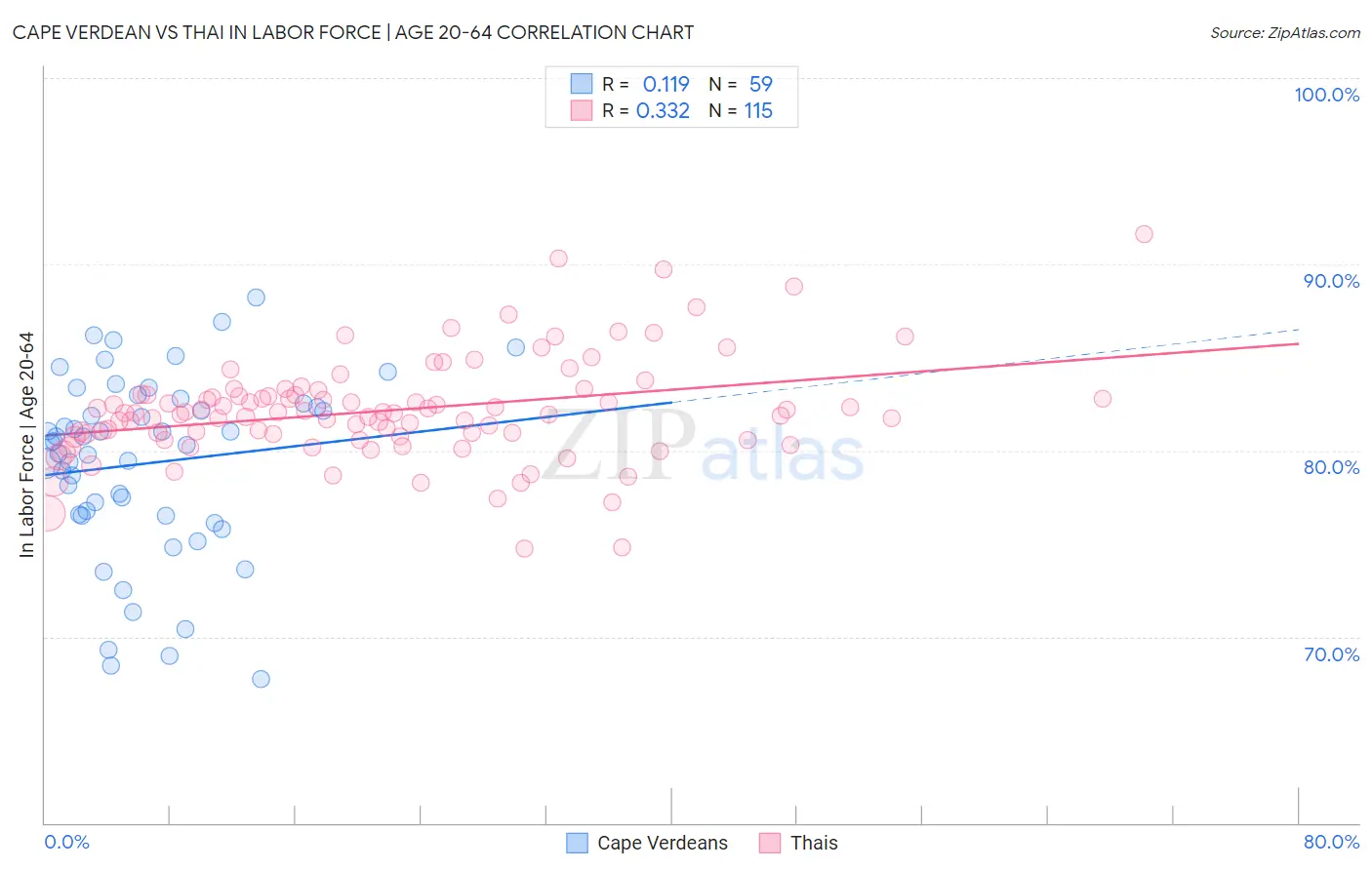 Cape Verdean vs Thai In Labor Force | Age 20-64 Correlation Chart