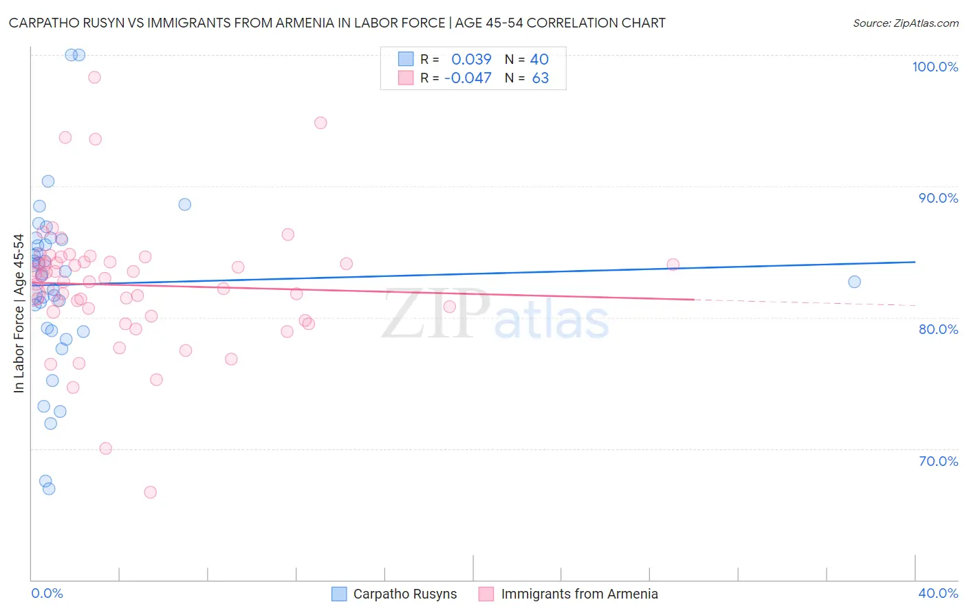 Carpatho Rusyn vs Immigrants from Armenia In Labor Force | Age 45-54 Correlation Chart