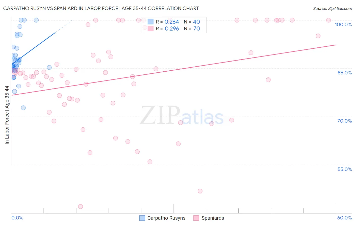 Carpatho Rusyn vs Spaniard In Labor Force | Age 35-44 Correlation Chart