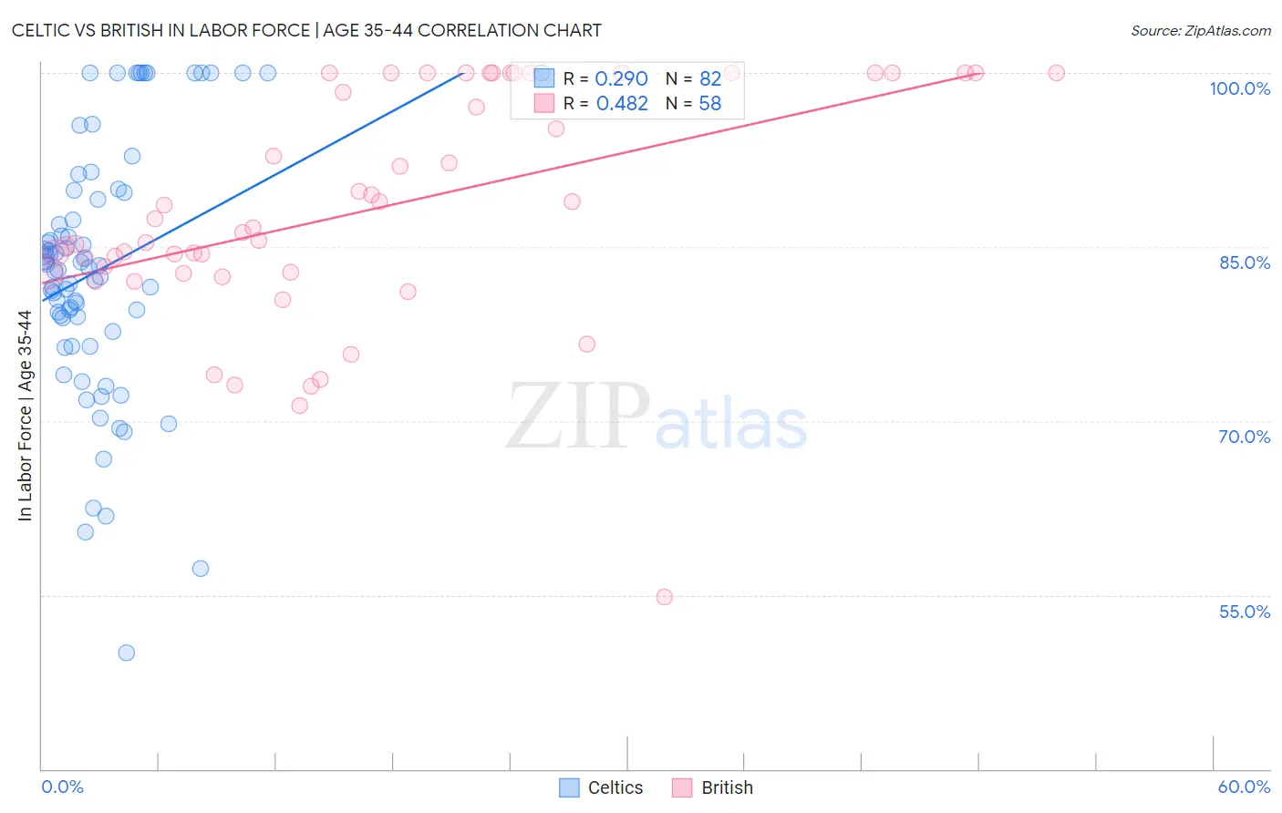 Celtic vs British In Labor Force | Age 35-44 Correlation Chart
