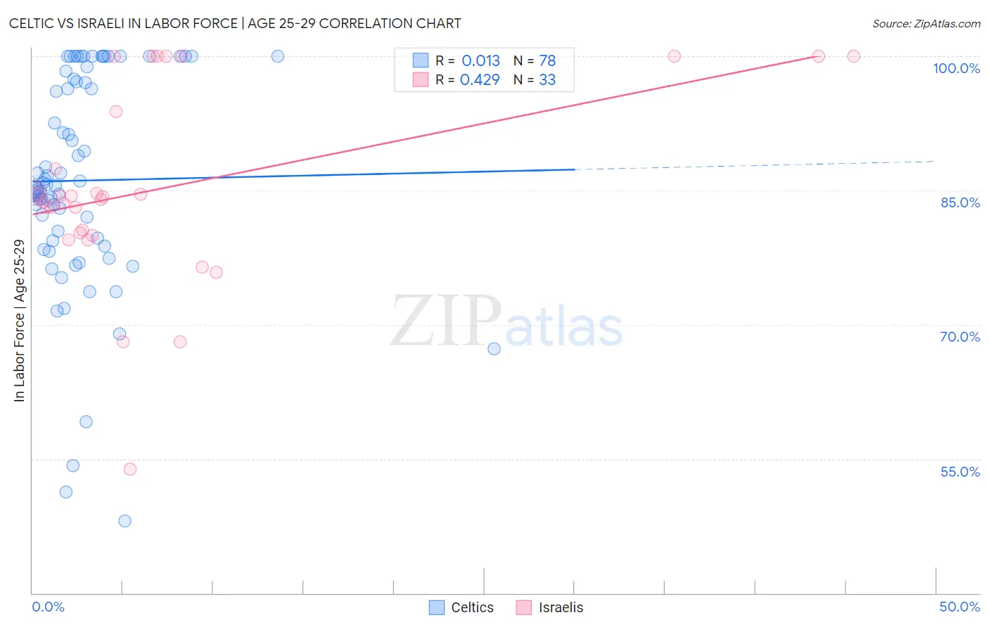 Celtic vs Israeli In Labor Force | Age 25-29 Correlation Chart