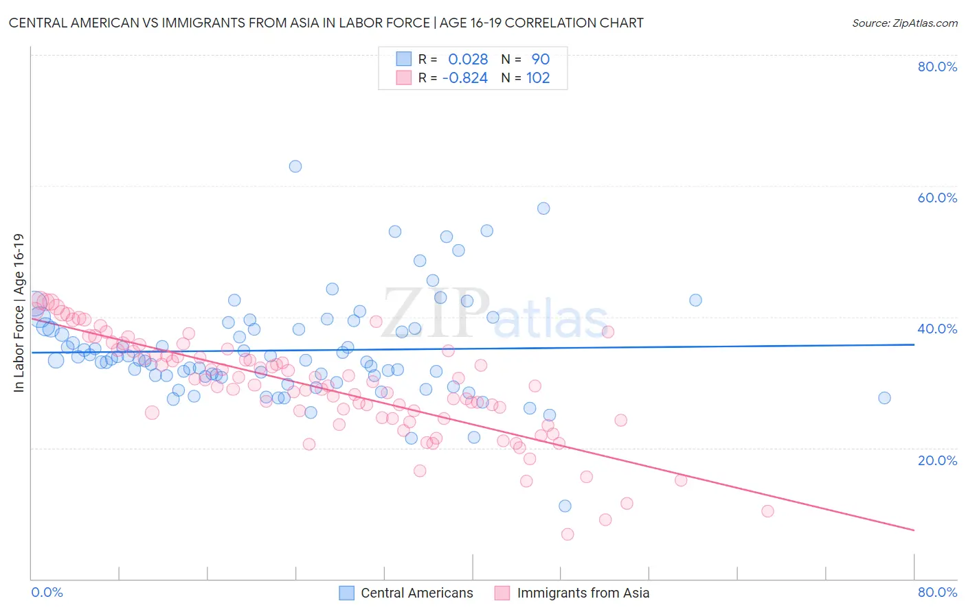 Central American vs Immigrants from Asia In Labor Force | Age 16-19 Correlation Chart