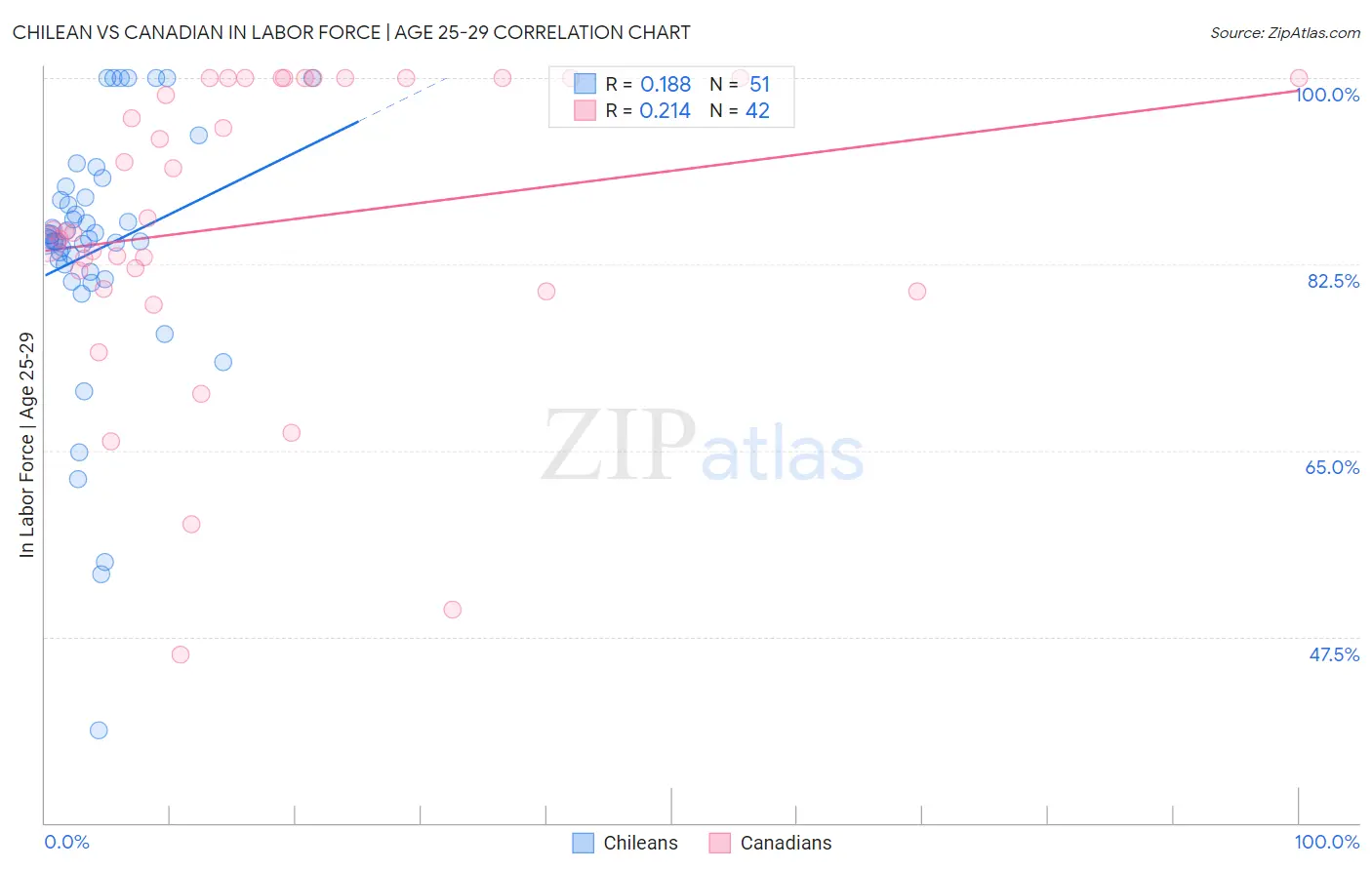 Chilean vs Canadian In Labor Force | Age 25-29 Correlation Chart