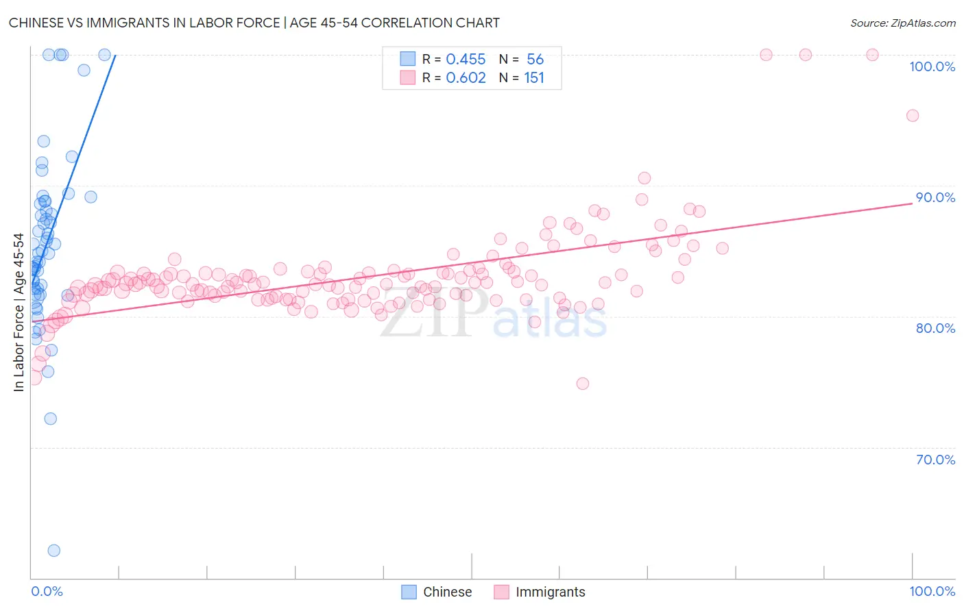 Chinese vs Immigrants In Labor Force | Age 45-54 Correlation Chart