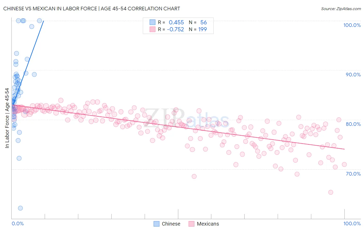 Chinese vs Mexican In Labor Force | Age 45-54 Correlation Chart