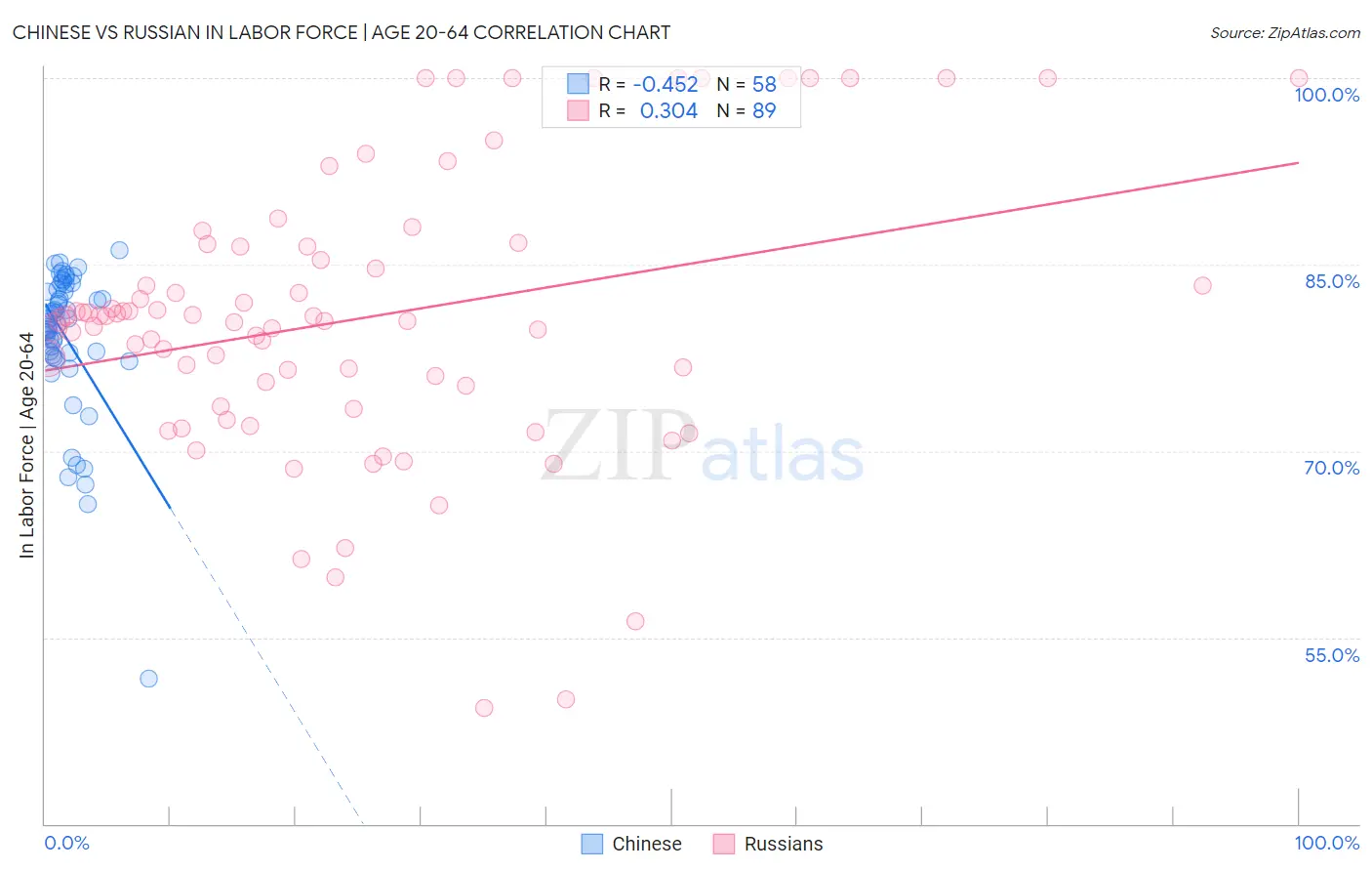 Chinese vs Russian In Labor Force | Age 20-64 Correlation Chart