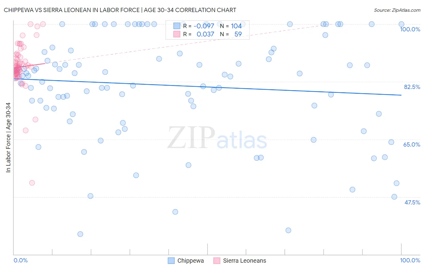 Chippewa vs Sierra Leonean In Labor Force | Age 30-34 Correlation Chart
