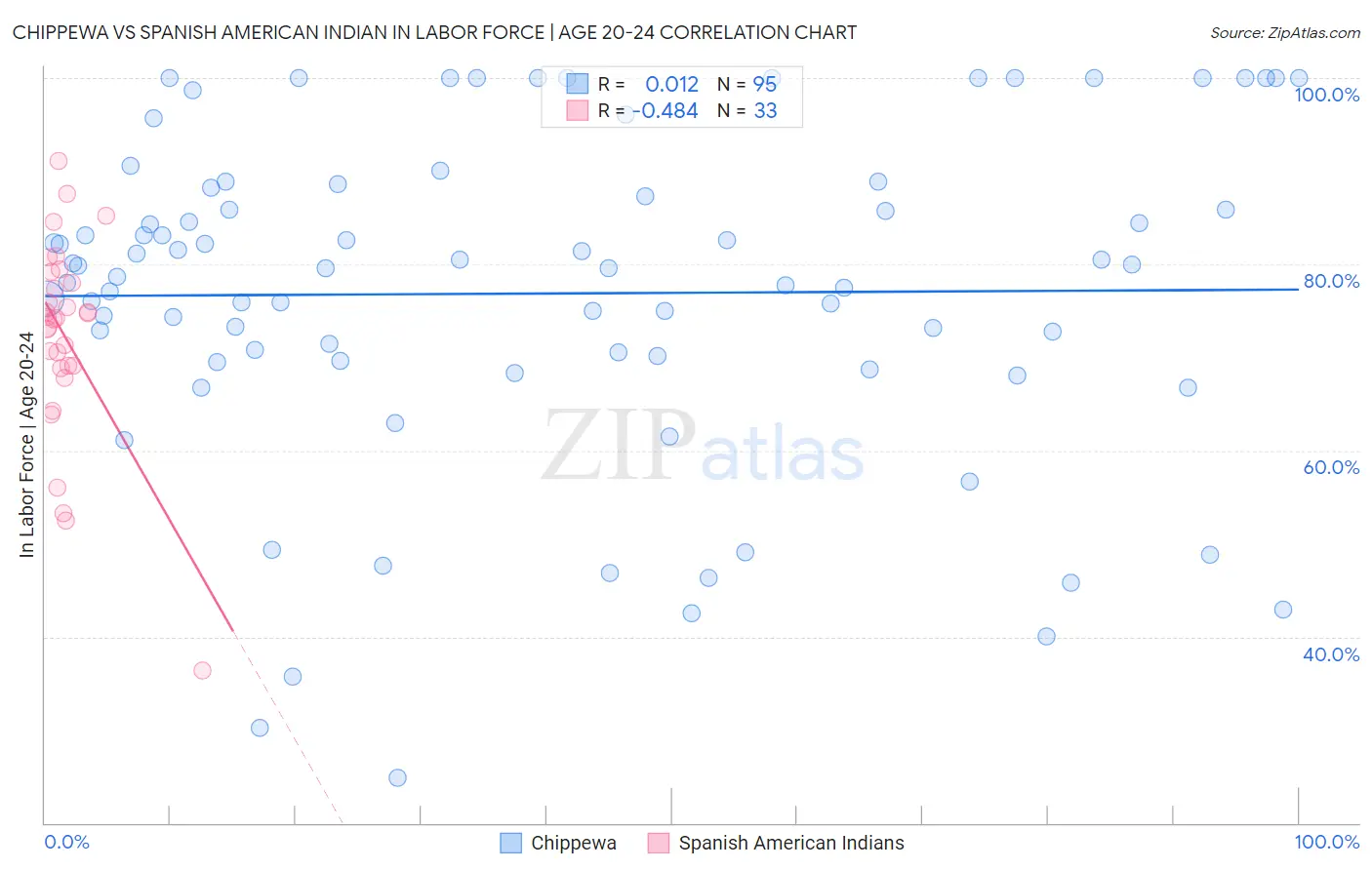 Chippewa vs Spanish American Indian In Labor Force | Age 20-24