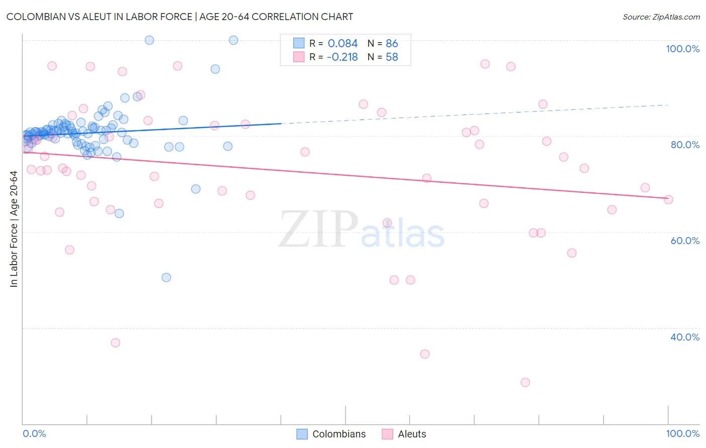 Colombian vs Aleut In Labor Force | Age 20-64 Correlation Chart