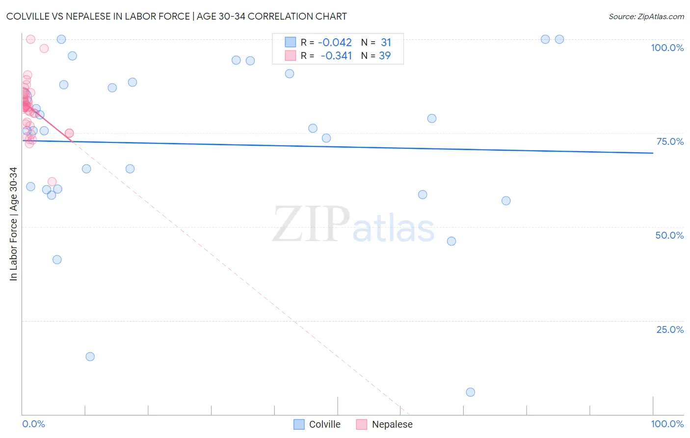 Colville vs Nepalese In Labor Force | Age 30-34 Correlation Chart