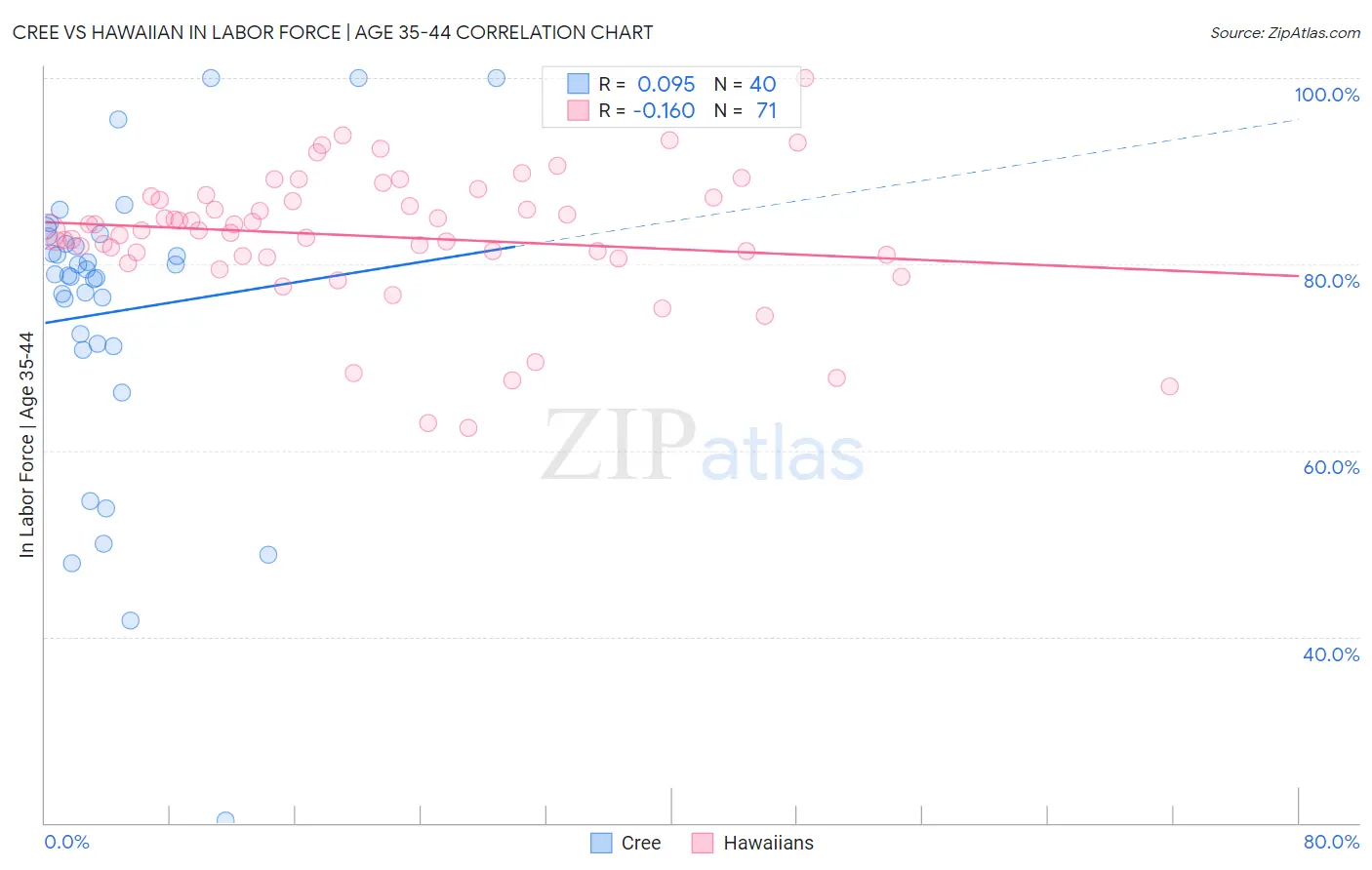 Cree vs Hawaiian In Labor Force | Age 35-44 Correlation Chart