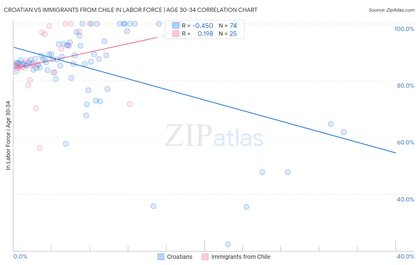Croatian vs Immigrants from Chile In Labor Force | Age 30-34 Correlation Chart