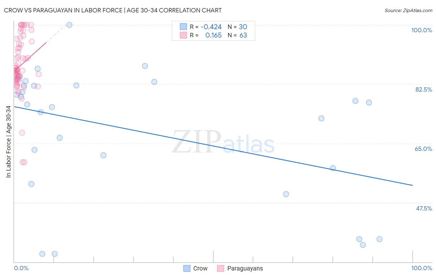 Crow vs Paraguayan In Labor Force | Age 30-34 Correlation Chart