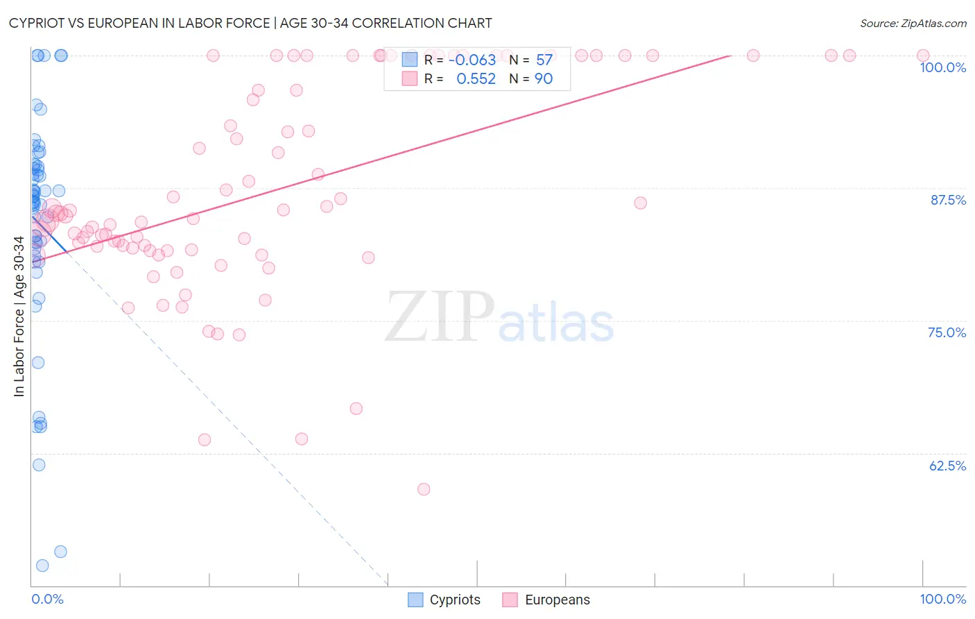 Cypriot vs European In Labor Force | Age 30-34 Correlation Chart