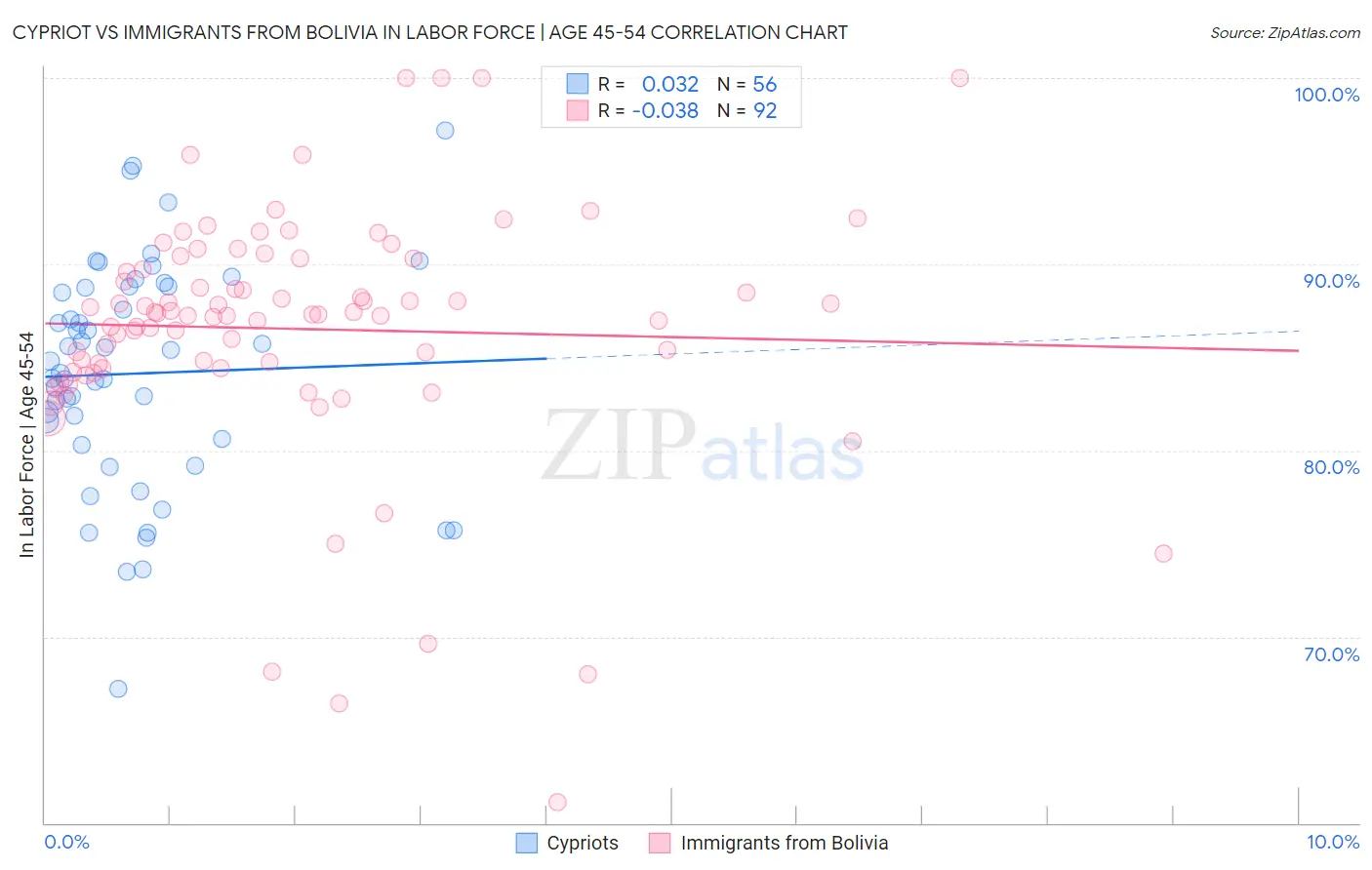 Cypriot vs Immigrants from Bolivia In Labor Force | Age 45-54 Correlation Chart