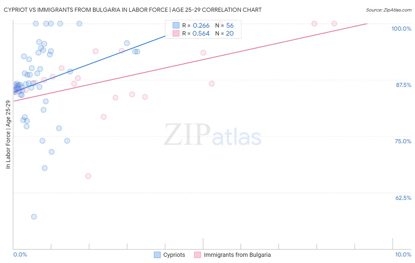 Cypriot vs Immigrants from Bulgaria In Labor Force | Age 25-29 Correlation Chart