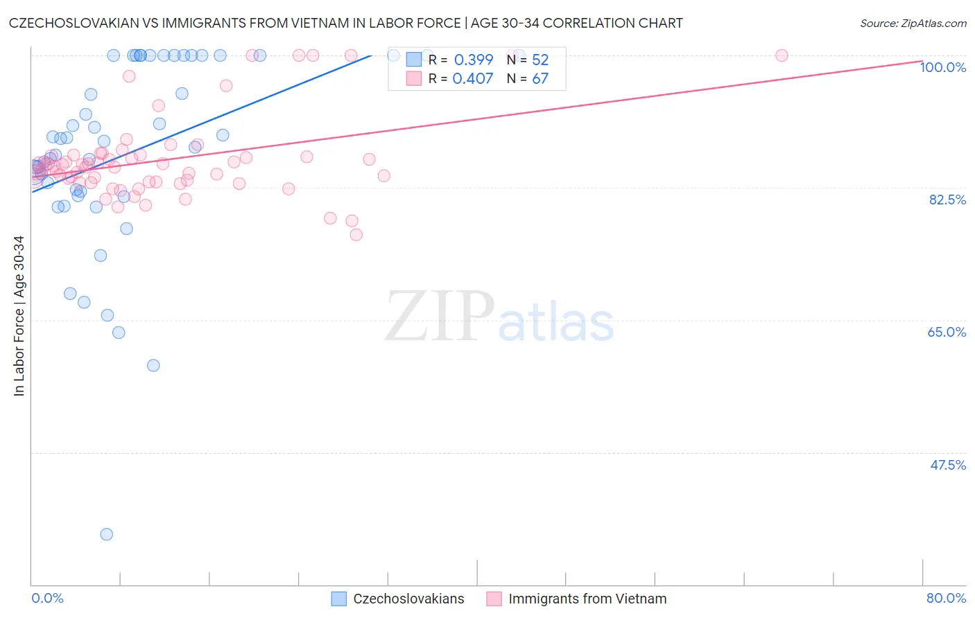 Czechoslovakian vs Immigrants from Vietnam In Labor Force | Age 30-34 Correlation Chart