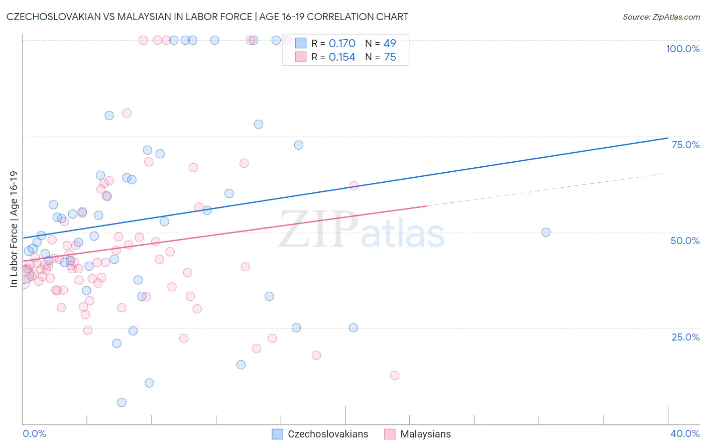 Czechoslovakian vs Malaysian In Labor Force | Age 16-19 Correlation Chart