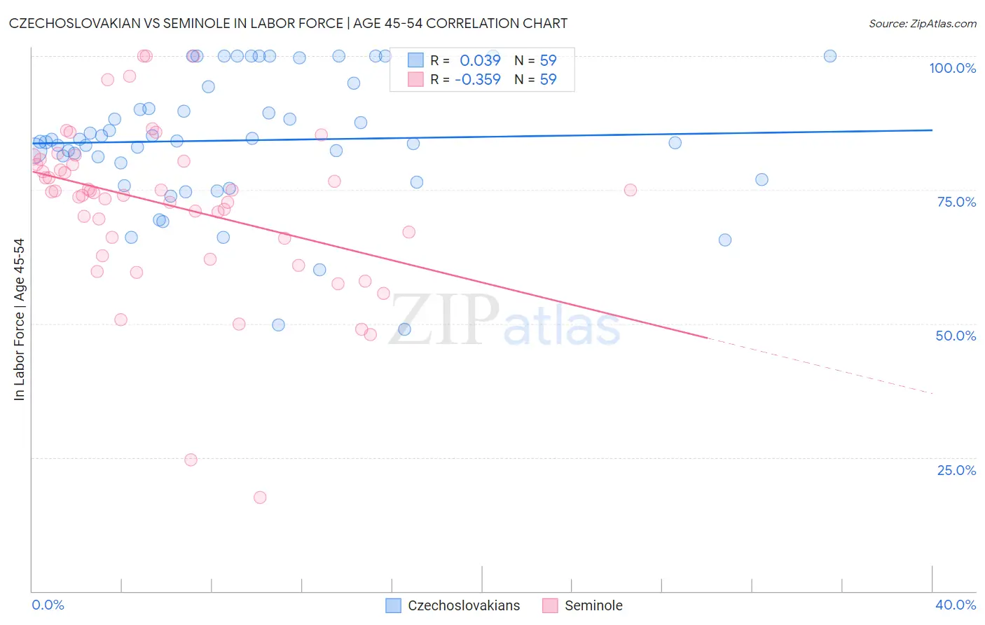 Czechoslovakian vs Seminole In Labor Force | Age 45-54 Correlation Chart