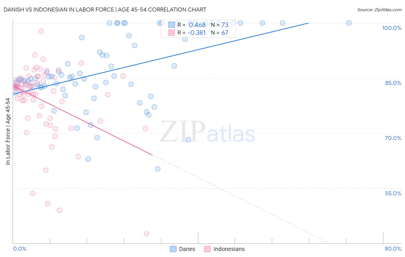 Danish vs Indonesian In Labor Force | Age 45-54 Correlation Chart