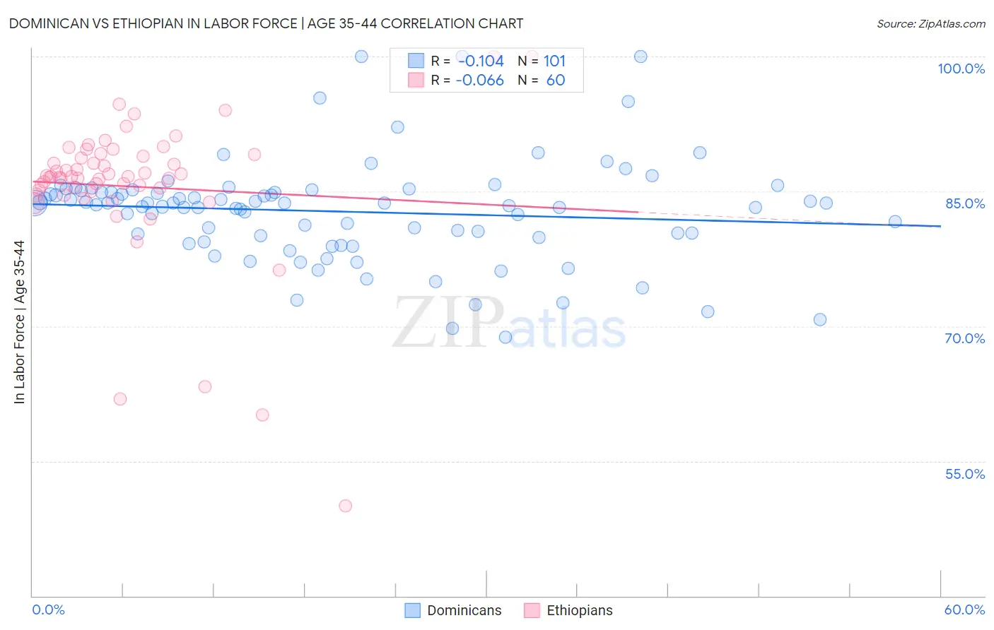Dominican vs Ethiopian In Labor Force | Age 35-44 Correlation Chart