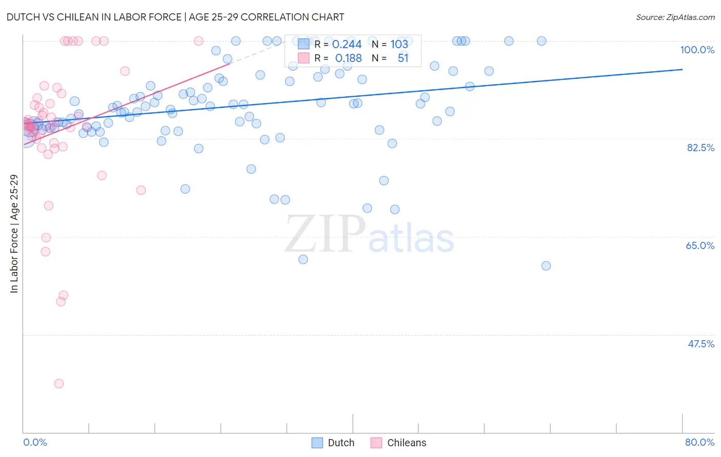 Dutch vs Chilean In Labor Force | Age 25-29 Correlation Chart