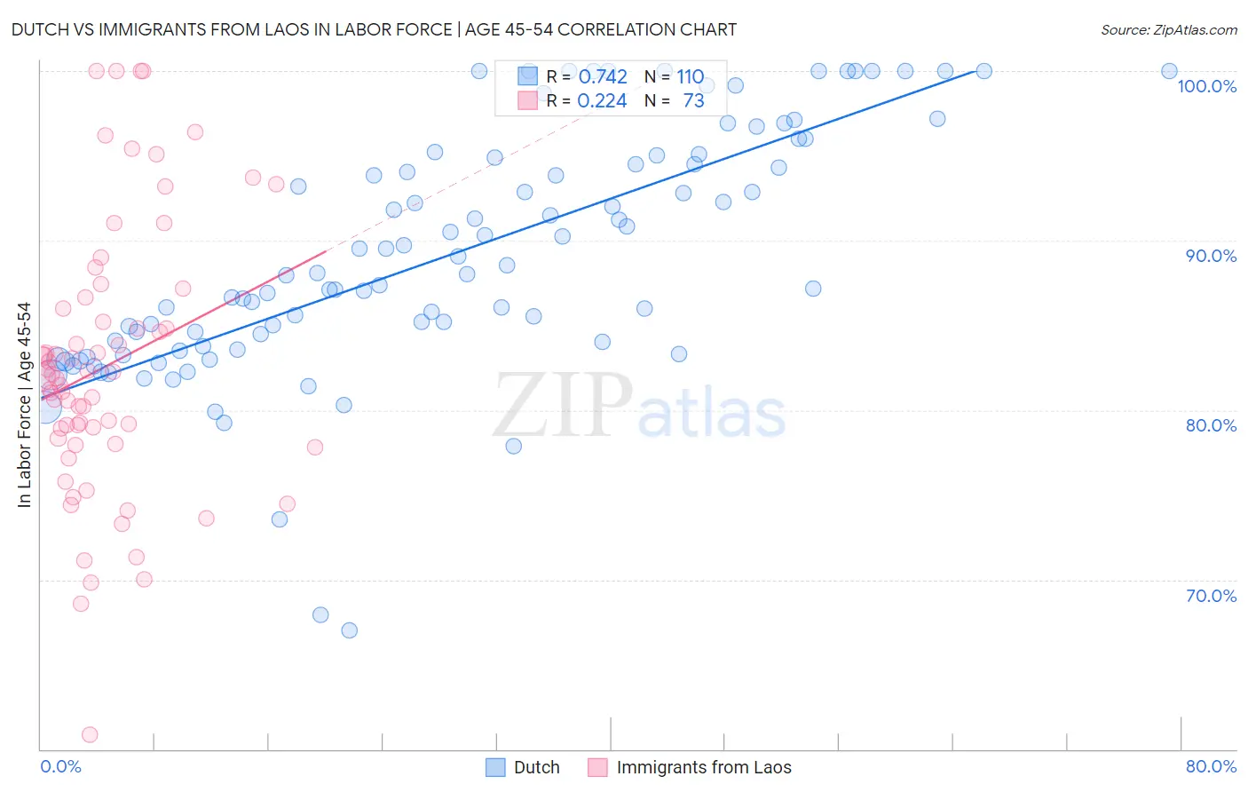Dutch vs Immigrants from Laos In Labor Force | Age 45-54 Correlation Chart