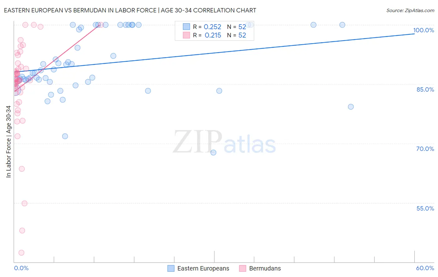 Eastern European vs Bermudan In Labor Force | Age 30-34 Correlation Chart