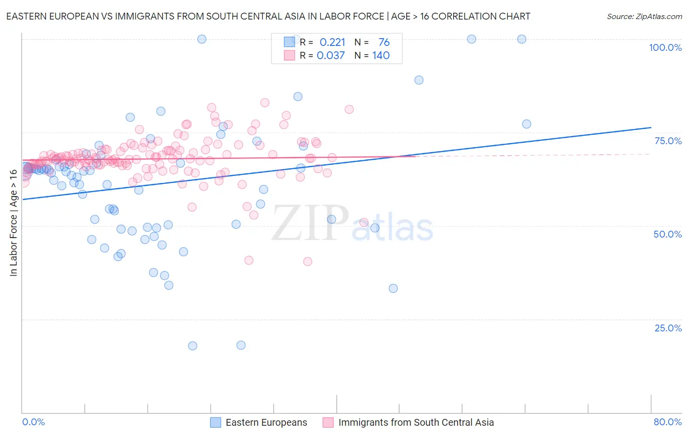 Eastern European vs Immigrants from South Central Asia In Labor Force | Age > 16 Correlation Chart