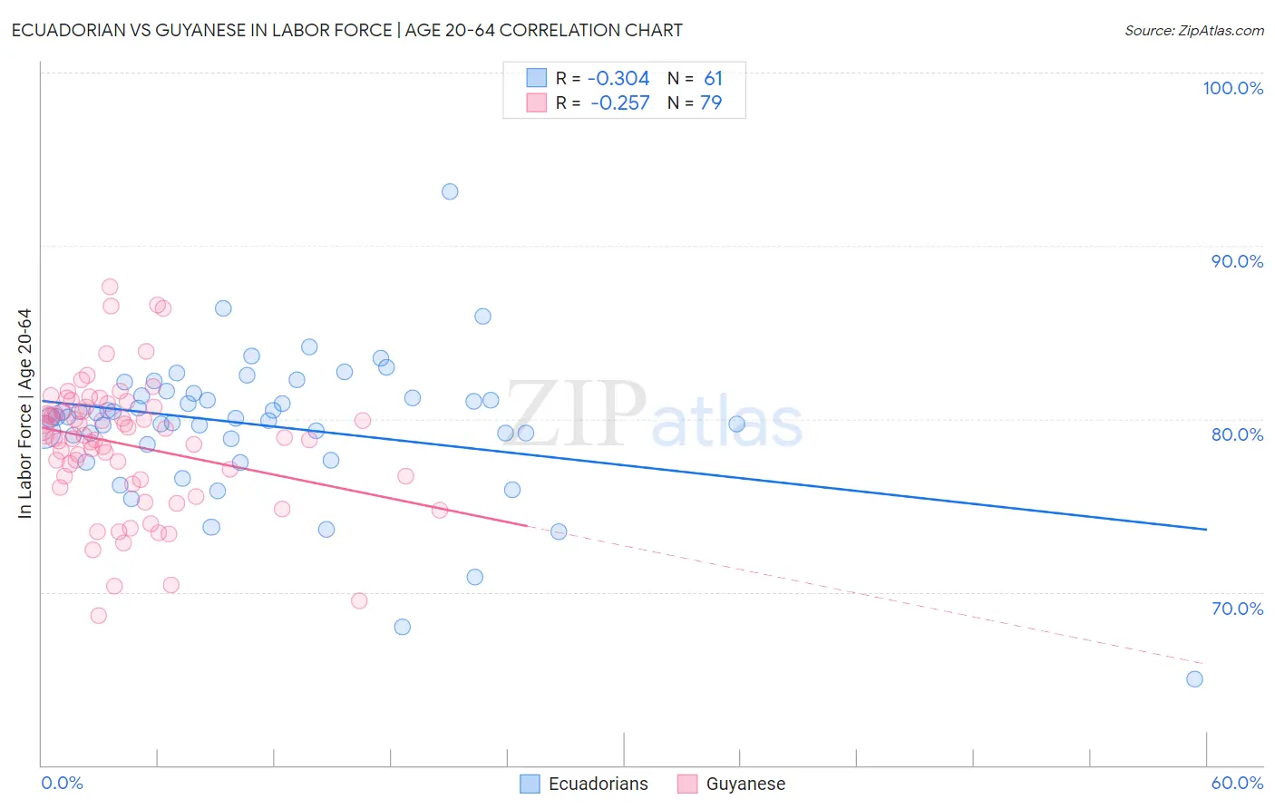 Ecuadorian vs Guyanese In Labor Force | Age 20-64 Correlation Chart