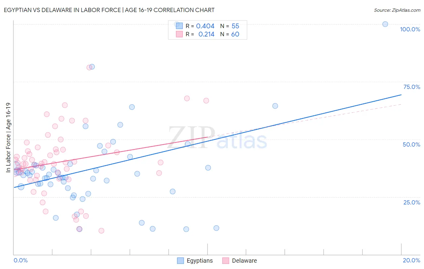 Egyptian vs Delaware In Labor Force | Age 16-19 Correlation Chart