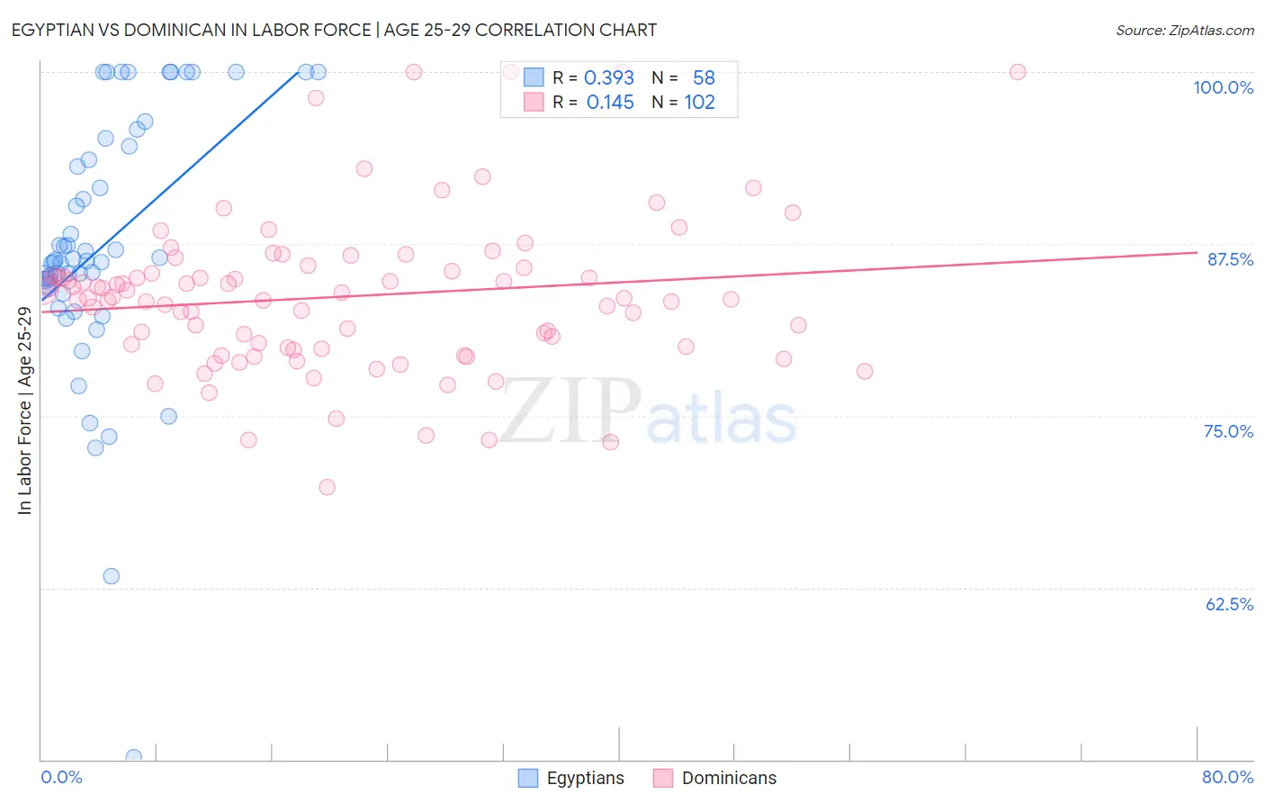 Egyptian vs Dominican In Labor Force | Age 25-29 Correlation Chart