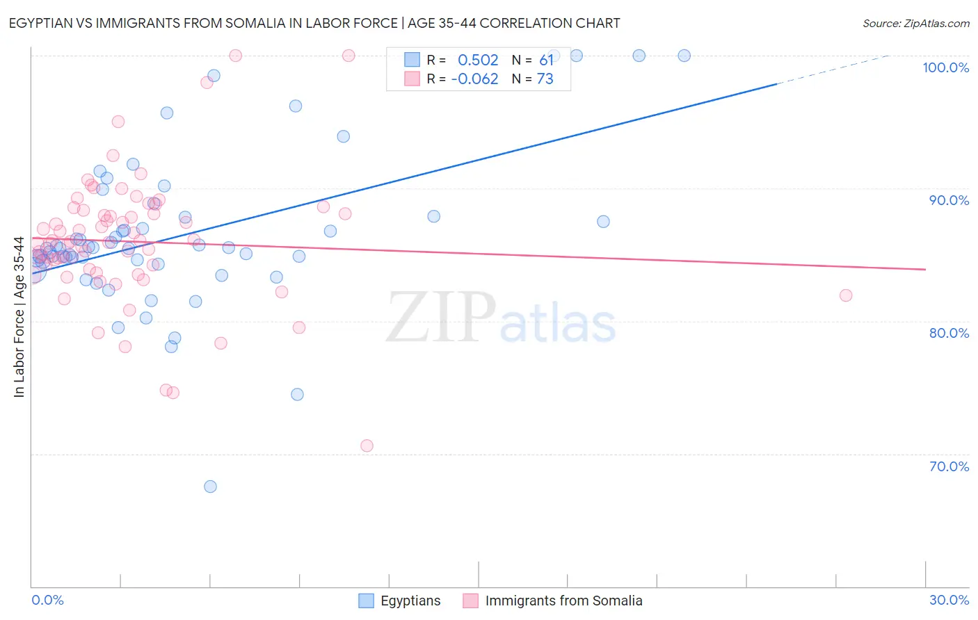 Egyptian vs Immigrants from Somalia In Labor Force | Age 35-44 Correlation Chart