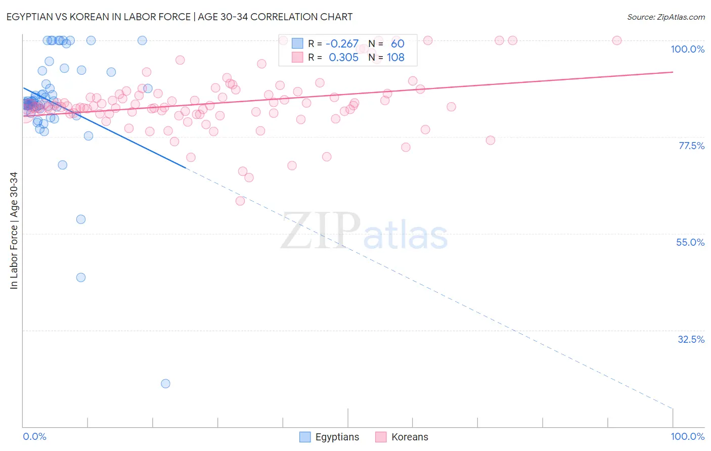 Egyptian vs Korean In Labor Force | Age 30-34 Correlation Chart