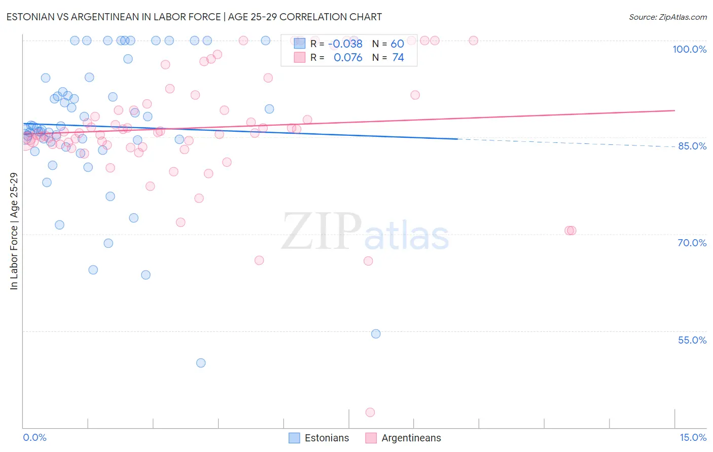 Estonian vs Argentinean In Labor Force | Age 25-29 Correlation Chart