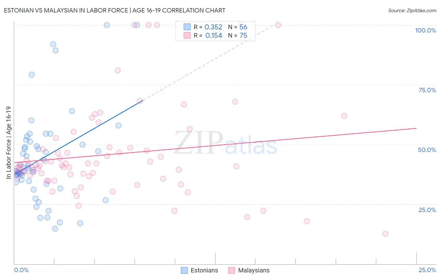 Estonian vs Malaysian In Labor Force | Age 16-19 Correlation Chart