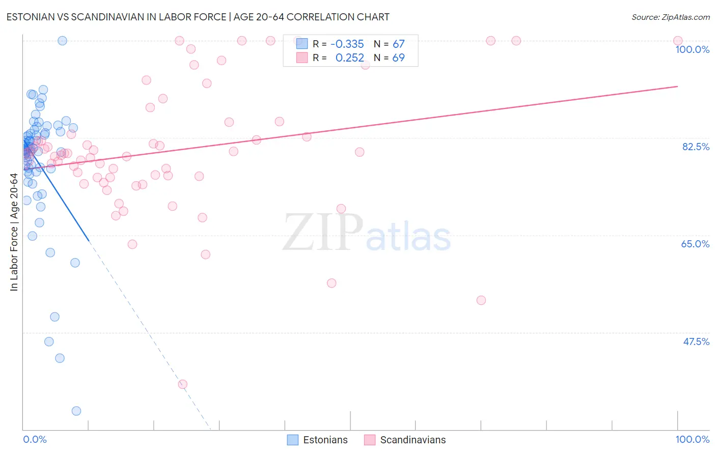 Estonian vs Scandinavian In Labor Force | Age 20-64 Correlation Chart