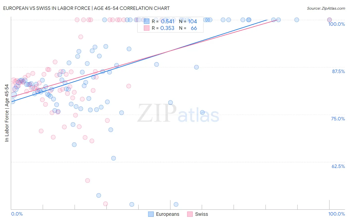 European vs Swiss In Labor Force | Age 45-54 Correlation Chart
