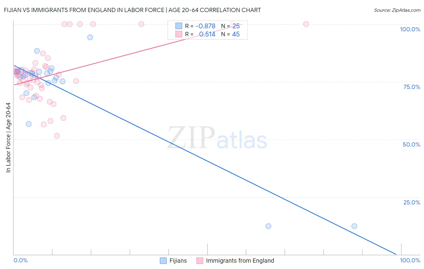Fijian vs Immigrants from England In Labor Force | Age 20-64 Correlation Chart