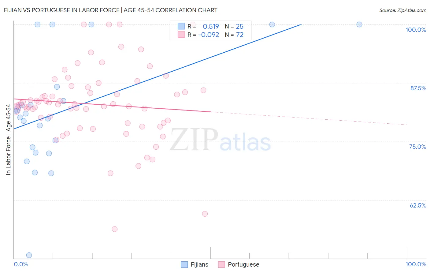 Fijian vs Portuguese In Labor Force | Age 45-54 Correlation Chart