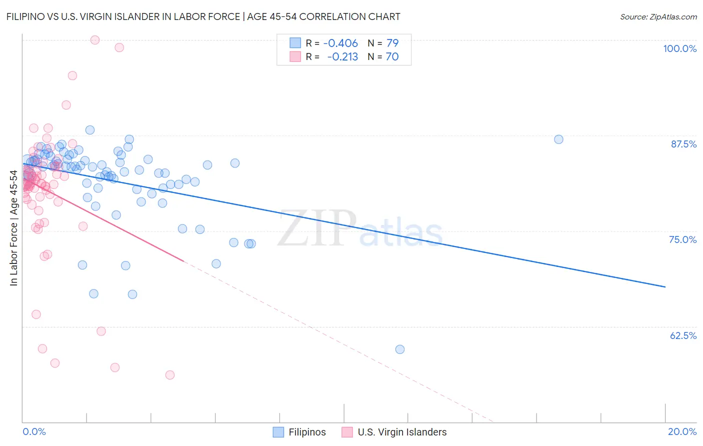 Filipino vs U.S. Virgin Islander In Labor Force | Age 45-54 Correlation Chart